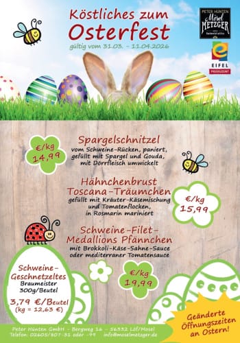 Für weitere Informationen und Bestellungen stehen wir Ihnen gerne zur Verfügung. Besuchen Sie uns in unserem Laden, rufen Sie uns an unter [02605/ 807 – 31 oder 99] oder kontaktieren Sie uns unter info@moselmetzger.de